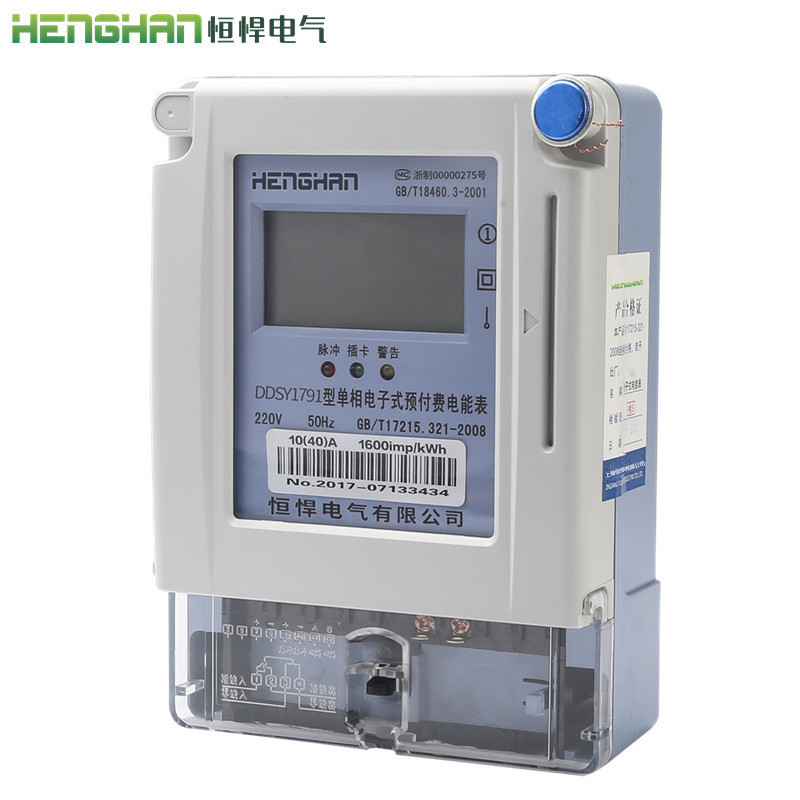 恒悍單相預付費電表型號證...